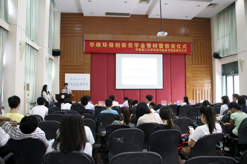 本屆獎(jiǎng)學(xué)金評(píng)選活動(dòng)自2016年6月份啟動(dòng),經(jīng)過(guò)層層遴選,最終有10支隊(duì)伍進(jìn)入決賽答辯環(huán)節(jié)展開(kāi)最后角逐。答辯環(huán)節(jié)分為ppt項(xiàng)目展示及評(píng)委提問(wèn),最后評(píng)出一等獎(jiǎng)1名、二等獎(jiǎng)2名、三等獎(jiǎng)3名、入圍獎(jiǎng)4名,由評(píng)委為獲獎(jiǎng)隊(duì)伍頒獎(jiǎng)。至此,第二屆華綠環(huán)保創(chuàng)新獎(jiǎng)學(xué)金評(píng)選活動(dòng)圓滿落幕。
