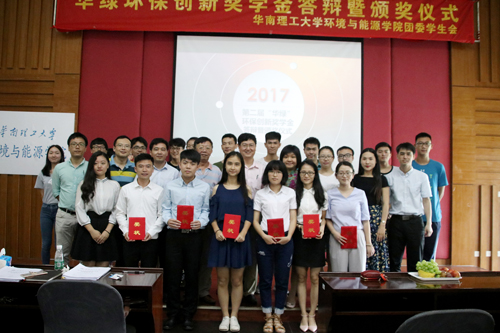 2017年6月22日,第二屆華綠環(huán)保創(chuàng)新獎(jiǎng)學(xué)金答辯暨頒獎(jiǎng)儀式在華南理工大學(xué)環(huán)境與能源學(xué)院舉行,出席儀式的評(píng)委嘉賓的有廣東省環(huán)境監(jiān)測(cè)協(xié)會(huì)秘書長(zhǎng)顧凜先生、華南理工大學(xué)環(huán)境與能源學(xué)院黨委副書記吳耀華、副院長(zhǎng)朱能武教授、汪曉軍教授、馮春華教授以及我司副總經(jīng)理姜元臻先生。